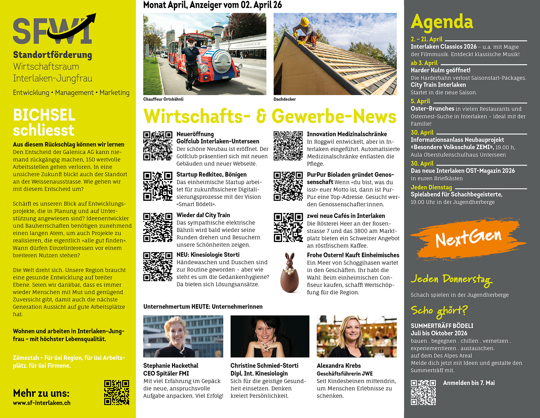 Was tut sich in der Wirtschaft? Was bewegt die Unternehmen? Berufsbilder und Unternehmer-Porträts (Frauen und Männer), eine Agenda mit ausgesuchten Events, Infos für NEXTGen … schaut rein!